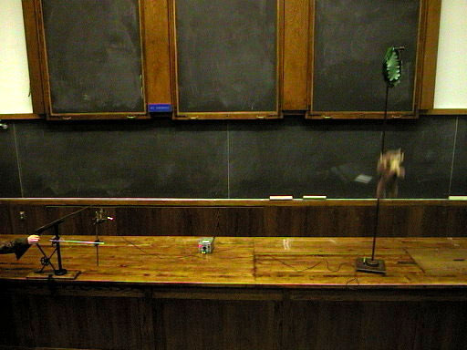 9. If everything works fine, set up everything for another shot and leave it for the professor to pull the trigger. The activator bar is tied to the gun, but occasionally it gets hit hard enough to come untied.