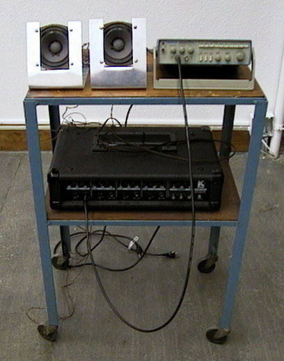 Two speakers are connected to different function generators. Beats can clearly be heard when the frequencies are nearly identical.